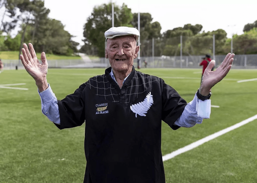 En su ajetreada agenda en Madrid, los Classic All Blacks han reservado tiempo para rendir homenaje a José Luis San Juan, leyenda del rugby español en los 40 y 50, cuando ni siquiera tenía actividad nuestra selección nacional. A sus 96 años, ha recibido a los Classic All Blacks en un bonito acto en el que, como agradecimiento, los neozelandeses le han dado una camiseta conmemorativa.