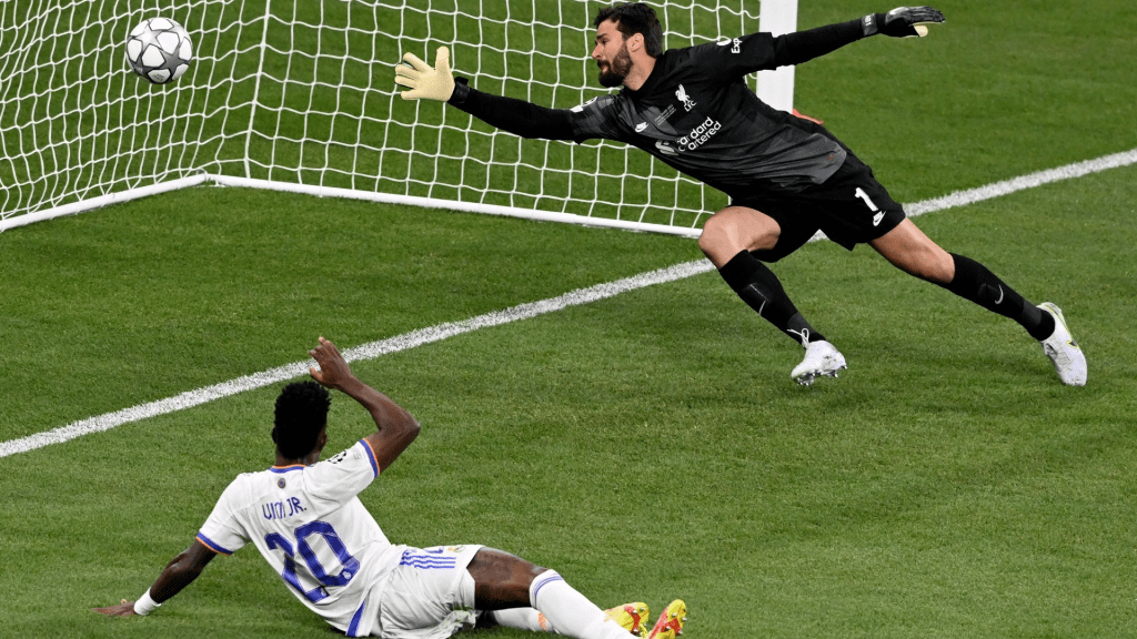 Cúmplase lo avisado en el no-gol de Benzema. Llega la segunda ocasión del Real Madrid. En una jugada brillante de Luka Modric´ y Dani Carvajal, el Madrid logró escapar de la alta presión del Liverpool y poner el balón en manos de Federico Valverde, al galope en banda derecha. Con un centro-chut (que el propio uruguayo reconoció después como un disparo errado), el pajarito logró asistir a un Vini Jr. que, a portería vacía, ponía el primer y último gol del encuentro. El gol del título.