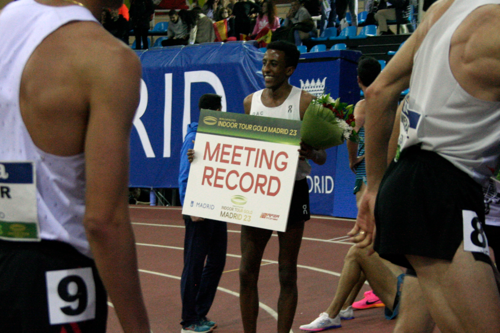 Entrada en meta de las participantes de la primera serie de los 60 metros lisos femeninos. Jaël Bestué ganó la semifinal con 7,23.Gerard Descárrega ganó los 60 metros masculinos (inclusivos) con récord de España en su categoría: 7,21.Final frenético de la Final A de los 400 metros masculinos. Victoria para Óscar Husillos (45,84), seguido por Iñaki Cañal y Benjamin Vedel.El fondista keniata Amos Bett descansando sobre el tartán de Gallur tras ganar los 3000 metros con marca personal de 7:42,53.Fernando Carro tras batir su marca personal en los 3000 metros (7:48,96). Quedó cuarto en la carrera.Nuestros representantes en el DNA Matchup U20 de esta misma mañana, también en Gallur en el público del World Indoor Tour Madrid 2023.El irlandés Mark English posando con su ramo de flores por haber ganado la prueba de los 800 metros lisos.Eva Santidrián, campeona de España de 400 metros, antes de hacer la función de liebre en la carrera de 800 metros femeninos.Lorea Ibarzabal antes del comienzo de la carrera de 800 metros.El saltador de longitud sueco Thobias Montler comentando con la grada de entrenadores su salto más reciente.Mariano García ‘arrancando la moto’ en su rutina pre-carrera.La saltadora canadiense Alysha Newman con el trofeo de ganadora del salto con pértiga en el World Indoor Tour Madrid 2023.Iván Pedroso recibe el premio MARCA Leyenda por su trayectoria.Reeta Hurske y Mette Gravesgaard posando con el cartel de récord nacional. Ambas batieron sus plusmarcas nacionales en la final del 60 metros vallas. Hurske, finlandesa, con 7,79. Gravesgaard, danesa, con 8,00.Salida de la primera final de los 400 metros lisos masculinos. De izquierda a derecha: Lucas Búa, Manuel Guijarro, Edoardo Scotti y Samuel García.Aminatou Seyni con los carteles de récord del meeting y récord nacional (Níger) tras su vistoria en los 60 metros lisos femeninos con 7,08.Noélie Yarigo con el trofeo de ganadora de la final de los 800 metros femeninos del World Indoor Tour Madrid 2023.Yared Nuguse como nuevo poseedor del récord del meeting en 1500 en una carrera que dejó frío al público tras las expectativas de récord mundial.