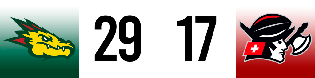 A pesar de un inicio tormentoso, entre la lluvia torrencial y un snap que salió demasiado alto para Conor Miller y que interceptó Tavai para conseguir el primer touchdown de la tarde, los Dragons reaccionaron inmediatamente vía aérea a través de Theodor Landström. El sueco terminó anotando 3 touchdowns (en 124 yardas de recepción) que le sirvieron para ser considerado el Hard Rock Café Player of The Week.