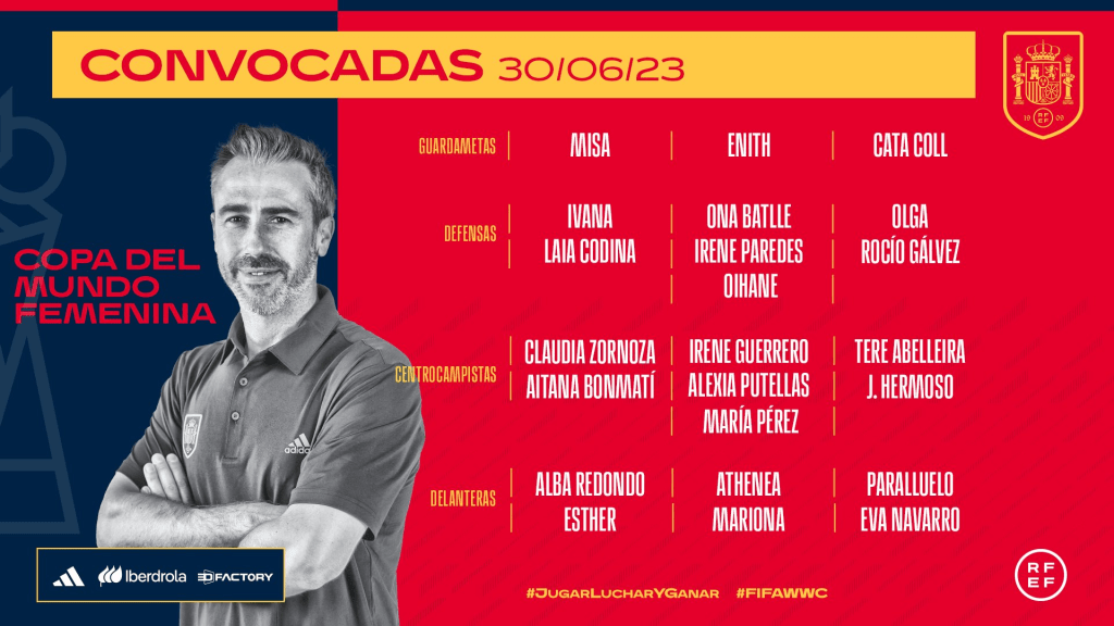 Las ausencias principales, desde la prelista, son Patri Guijarro, Sandra Paños y Mapi León. De las preseleccionadas, destacan Marta Cardona, Maite Oroz, Jana y Sheila García (lesión).